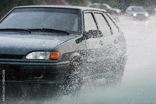 rain, car, water, road, wet, flood, puddle, weather, driving, splash, city, traffic, street, motion, storm, dripped, speed, splashing, wheel, flowing, spray, vehicle, heavy, hazardous, torrential, warning, transportation, tire, drive, wave, surface, danger, mud, reflections, outdoors, urban, blur, blurred, flooded, day, thunderstorm, energy, dirty, bubble, race, machine, adventure, automobile, auto, moving