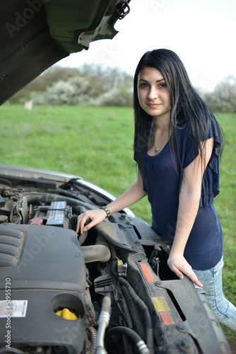 attractive, car, car, white, blue, break, broken, caucasian, driver, nonchalant, woman, girl, garage, grey, young, pretty, mechanic, tool, person, pose, dress, fix, working, trouble, car, vehicle, chess, breakdown, wreck, adult, assist, audience, waiting, beauty, cute, hood, hair, outside, woman, people, machine, hand, mobile, sad, 1, emergency