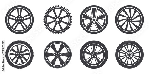 Car Wheel Icon with Speed Lines – Flat Minimalist Tire Silhouette in Black on White Background, Fast Auto Motion Symbol Vector Design