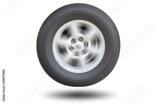 Car wheel spinning isolated on white background.