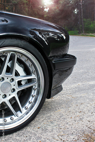 Car wheels close up on a background of asphalt. Car tires. Car wheel close-up. for advertising (for advertising). The car on a background autumn