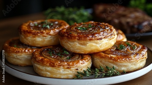 Caramelized onion tarts on a plate.