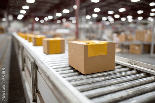 warehouse, conveyer, belt, box, shipping, delivery, logistic, distribution, storage, industrial, manufacturing, automation, supply, chain, cardboard box, cargo, transportation, industry, modern, business, commerce, retail, fulfillment, center, interior, factory, production, line, good, product, movement, efficiency, technology, system, operation, workflow, process, facility, loading, dock, container, transport, equipment, motion, processing, automated, bulk, sorting, package