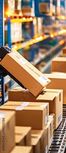 conveyer belt, warehouse, logistic, shipping, delivery, distribution, e-business, online shopping, cardboard box, industrial, factory, manufacturing, automation, technology, business, industry, efficiency, speed, movement, transportation, product, good, barcode, label, brown, stack, stacking, wood, box, storage, clothes, building, wooden