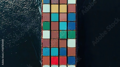 Cargo ship transporting containers at sea aerial view industrial shipping activity maritime environment