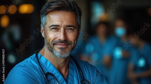 doctor, friendly, scrub, teamwork, professionalism, blue, environment, caring, health care, support, trust, compassion, emotion, confidence, medicals, human, collaboration, calm, atmosphere, background, clarity, male, leadership, staff, life events, service, consultation, safety, health, character, healing, dedication, maturity, balance, connection, quality, sharpened, facility, portrait, respect, engagement, hospital, oneness, space