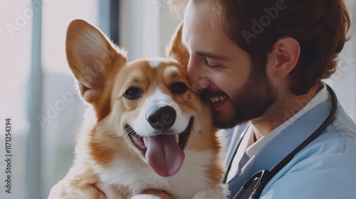 Caring Vet with Happy Dog