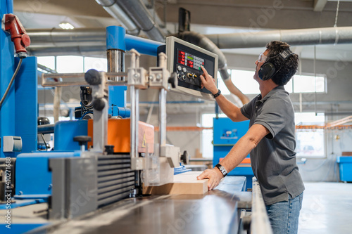 technology, 1, people, industry, adult, man, assembly line, working, standing, t-shirt, tied-up, control panel, occupation, job, goggles, mature, adult, alone, male, control, caucasian, safety, expertise, black hair, carpenter's shop, woodwork, workshop, craft, factory, industrial building, carpenter, woodworker, craftsman, preparation, machinery