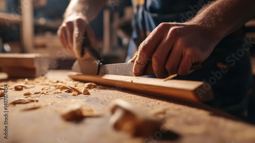 Carpenter shaping a wooden leg for a table. Featuring wood shaping and carpentry work