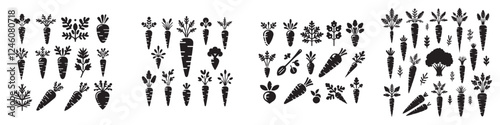 carrot, vector, illustration, set, icon, food, vegetable, silhouette, design, black, vegetarian, healthy, signs, isolated, collection, nature, fresh, graphic, vegan, organic, symbol, vitamin, salad, easter, background, root, harvest, diet, agriculture, element, cartoon, simple, plant, nourishment, health, natural, garden, flat, white, leaf, rabbit, green, rabbit, holiday, raw, template, springtime, ingredient, outline