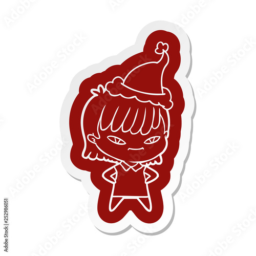 cartoon sticker of a woman wearing santa hat