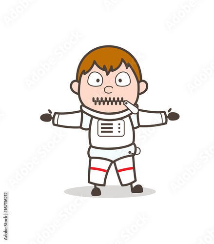 Cartoon Astronaut Zipper-Mouth Face Vector Illustration