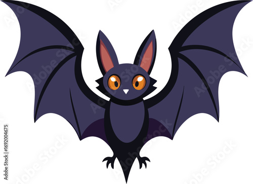 Cartoon Bat with Open Wings Isolated on White Background for Halloween