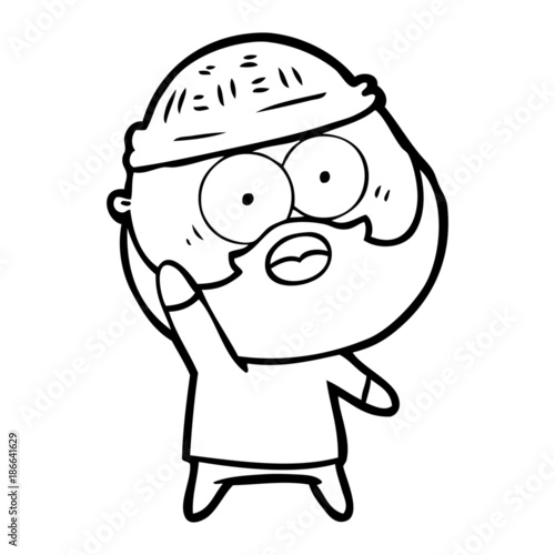 cartoon bearded man holding up hand