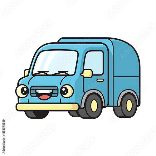 truck, cartoon, transportation, vehicle, delivery, van, cute, automobile, transport, icon, graphic, illustration, design, isolated, car, auto, vector, funny, smile, happy, wheel, blue, animation, comic, driving, commercial, shipment, logistic, service, moving, express, package