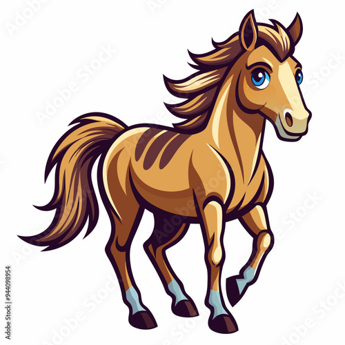 cartoon, horse, brown, blue, eye, equine, mammal, animal, mane, tail, hoof, white, background, illustration, cute, friendly, happy, smile, farm, ranch, stable, wild, domestic, gallop, run, trot, pasture, field, grass, nature, drawing, art, digital, graphic, design