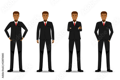 american, african, businessman, suit, uniform, manager, leader, corporate, economy, company, success, professional, project, staff, job, work, illustration, man, vector, cartoon, cooperation, pose, different, element, create, simple, black, boss, human, business, office, standing, smile, happiness, character, group, attaching, isolated