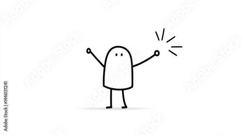 Cartoon Character Joyfully Raising Arms with a Small Object in a Simple Line Art Style