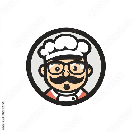 Cartoon chef, smiling, in circle, logo design, for restaurant