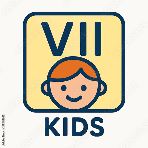 children, cartoon, children, logotype, roman, numeral, 7, symbol, character, illustration, happy, face, smile, young, boy, girl, education, school, kindergarten, learning, play, fun, game, creativity, development, childhood, graphic, design, icon, emblem, badge, label, element, concept, modern, simple, clean, isolated, white, background, digital, art, creative, children, generation, youth, innocence