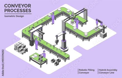 hybrid, assembly, conveyer, line, robotic, filling, industrial, automation, process, factory, production, belt, product, plant, automated, industry, equipment, technology, robot, control, innovation, automatic, system, three-dimensional, isometric, view, symbol, icon, set, flat, cartoon, vector, illustration, signs, design, graphic, background, colours, web, app, style, concept, element, thin, outline, linear, contour, business, engineering, quality