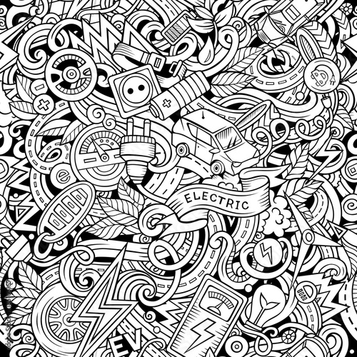 Cartoon cute doodles hand drawn Electric vehicle seamless pattern