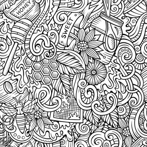 Cartoon cute doodles hand drawn Honey seamless pattern