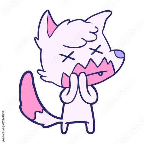 cartoon dead fox in bright neon color
