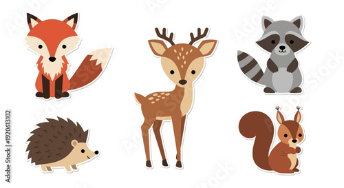 fox, cervid, raccoon, hedgehog, squirrel, animal, forest, cartoon, illustration, vector, isolated, white, cute, wildlife, nature, fur, brown, orange, grey, eye, ear, tail, antler, spot, striped, spine, claw, sitting, standing, looking, playful, happy, friendly, design, graphic, art, children, book, educational, character, timberland, mammal, creature, sticker, template, copy space