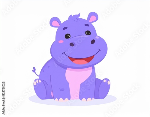 hippopotamus, hippo, cartoon, illustration, purple, smile, cheek, eye, ear, tail, animal, pet, character, stylised, children, children, book, animation, media, design, art, visual, creature, pose, soft, rounded, charming, sweet, lovable, vignetting, drawing, graphic, icon, friendly, nature, minimal, background, sitting, cheerful, expressive, playful, adorable, educational, cute, vibrant, fun, wild
