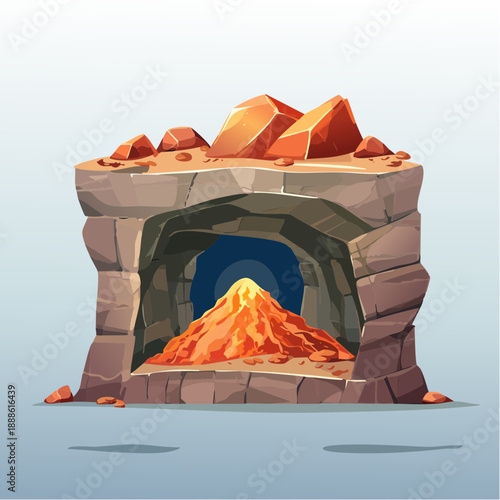 cave, lava, rock, volcano, stone, geology, eruption, geothermal, mineral, cartoon, illustration, stylised, red, orange, warm, adventure, fantasy, underground, natural, landscape, environment, formation, rough, texture, design, artwork, portal, glowing, light, abstract, concept, element, background, digital, art, graphic, creative, structure, nature, elemental, fire, heat, energy, geologic, deposit