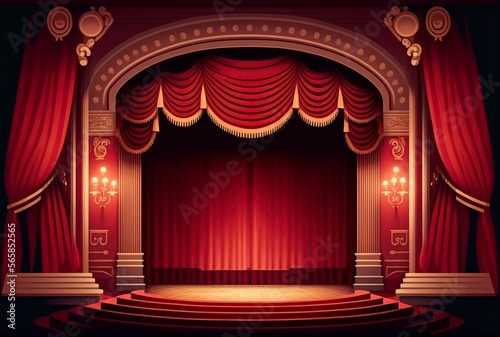 cartoon illustration, theater with red curtains ,generative AI