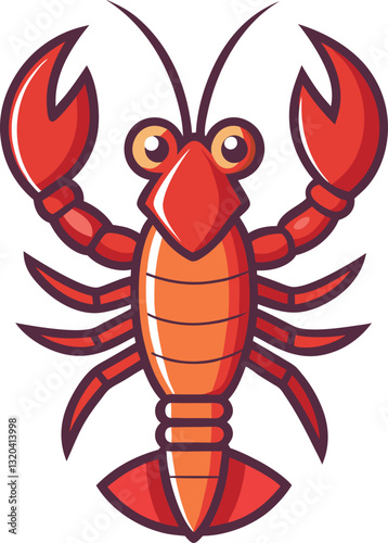 Cartoon Lobster Vector Illustration with Bright Claws, Playful lobster vector design with bright red claws and vibrant colors, perfect for seafood and ocean-themed illustrations.