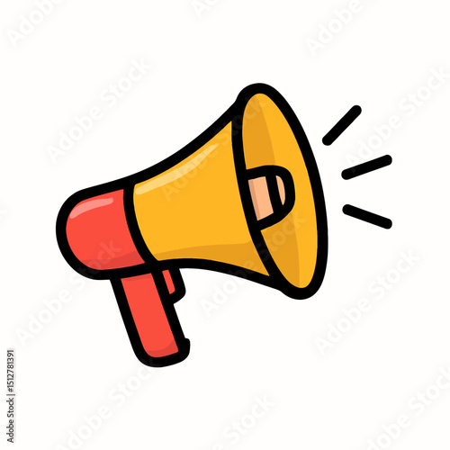 megaphone, bullhorn, announcement, loudspeaker, speaker, public address, promotion, marketing, advertising, communication, broadcast, news, information, message, alert, warning, attention, vector, illustration, graphic, design element, cartoon, cute, simple, clip art, symbol, signs, white, yellow, red, isolated, background, web design, website, digital, media