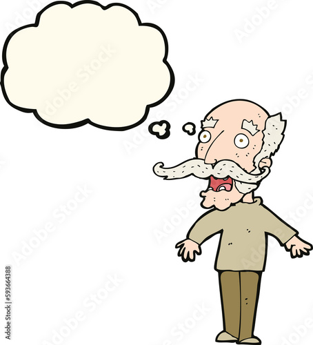 cartoon old man gasping in surprise with thought bubble