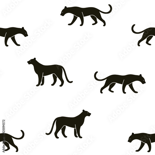 Cartoon panther - seamless trendy pattern with animal in various poses. Flat design vector print for prints, clothing, packaging and postcards.