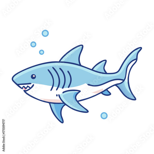 Cartoon Shark Swimming with Bubbles an Adorable Aquatic Animal Illustration