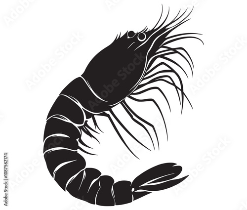 Cartoon shrimp silhouette vector art illustration white background, Lobster silhouette icon
