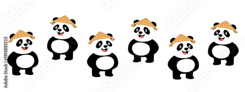 Cartoon Smiling Panda Bear Wearing Asian Conical Hat Illustration