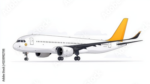 Cartoon Style Airplane Illustration with Yellow Wing and White Body on Simple Background