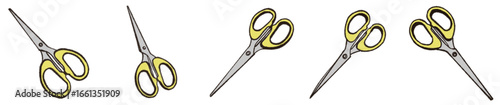 Cartoon Style Scissors Illustration PNG with Yellow Handle for Stationery Design