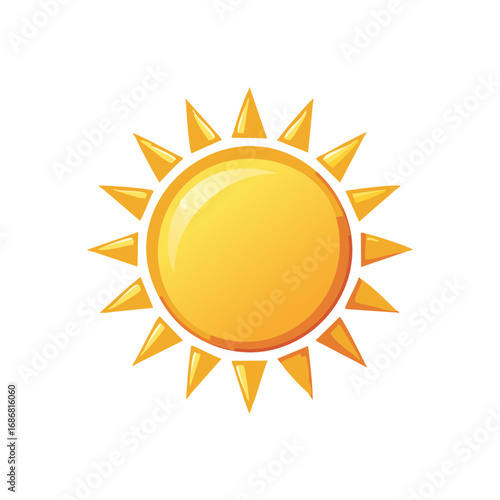 Cartoon Sun with Rays Shining Brightly in Yellow Illustration Style