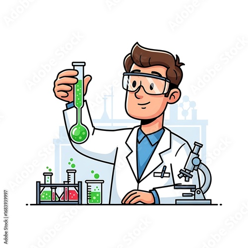 Cartoon Vector of Scientist Looking at Lab Sample