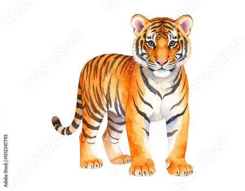 tiger, animal, wildlife, watercolor, character, cartoon, illustration, jungle, safari, zoo, cat, felino, nature, timberland, forest, wild, life, drawing, mammal, portrait, adorable, decoration, art, isolated, generative, ai