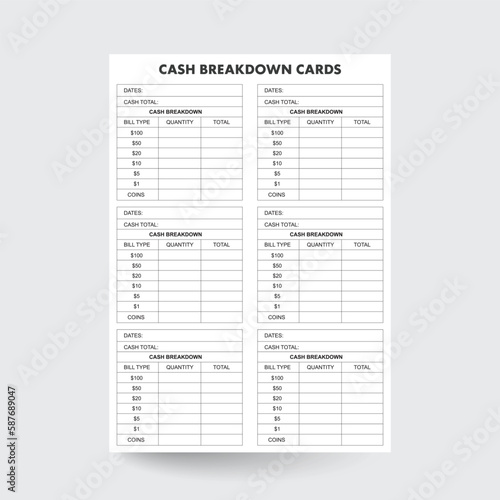 Cash Breakdown Card,Cash Breakdown Count Sheet,Cash Breakdown,Cash Envelopes,Cash Tracker,Cash Count Sheet,Cash Withdraw,breakdown cards,cash wallet planner