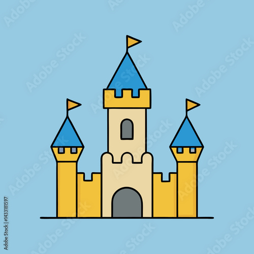 castle, vector, building, cartoon, house, illustration, architecture, tower, mediaeval, fortress, town, princess, fantasy, city, home, fairy tale, flag, church, icon, clip art, fairy, village, old, art, design