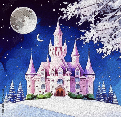 Castle . Illustration painted with oil paint for printing on wall decorations and covers