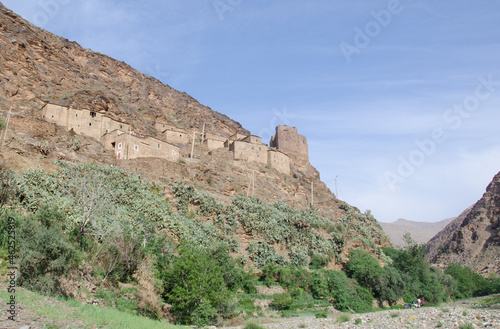castle and village, in high atlas mountains morocco. the use of this kind of castle in the high mountains is to protect the goods of the villagers,