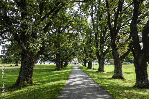 exterior, outdoors, destination, bavarian, bavaria, at, german, europa, castle, lake, landmark, sight, avenue, park, castle grounds, tree