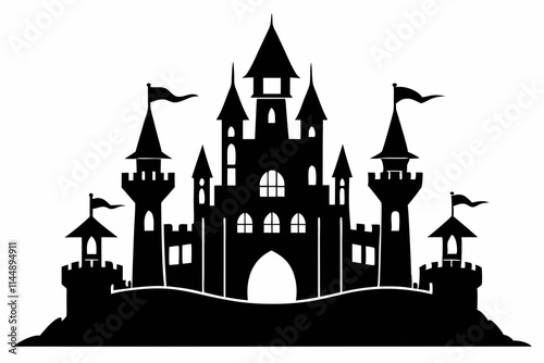 castle line art silhouette vector illustration